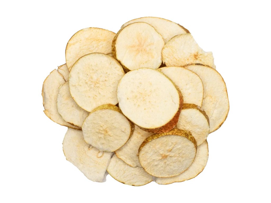 Lyofilizované hrušky si díky šetrnému sušení mrazem zachovávají svou přirozeně sladkou chuť, jemné aroma i typickou strukturu. Křupavé plátky pocházejí z českých sadů a představují chutnou, lehkou svačinu bohatou na vlákninu. Skvěle se hodí také do snídaňových kaší, jogurtů nebo jako dekorace na dorty a dezerty.